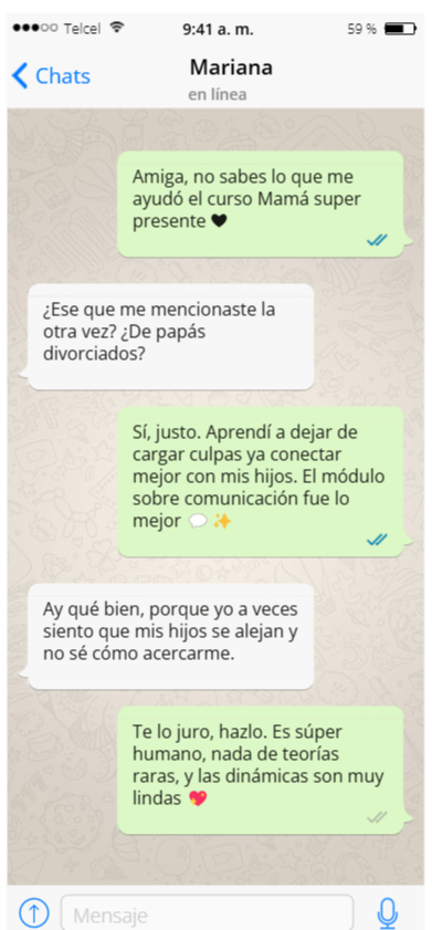Este no es consumo pasivo. Es hacer: guiones, rituales, acuerdos y reparaciones rápidas. Además, tienes diagnóstico y plantillas que aterrizan a tu realidad.
